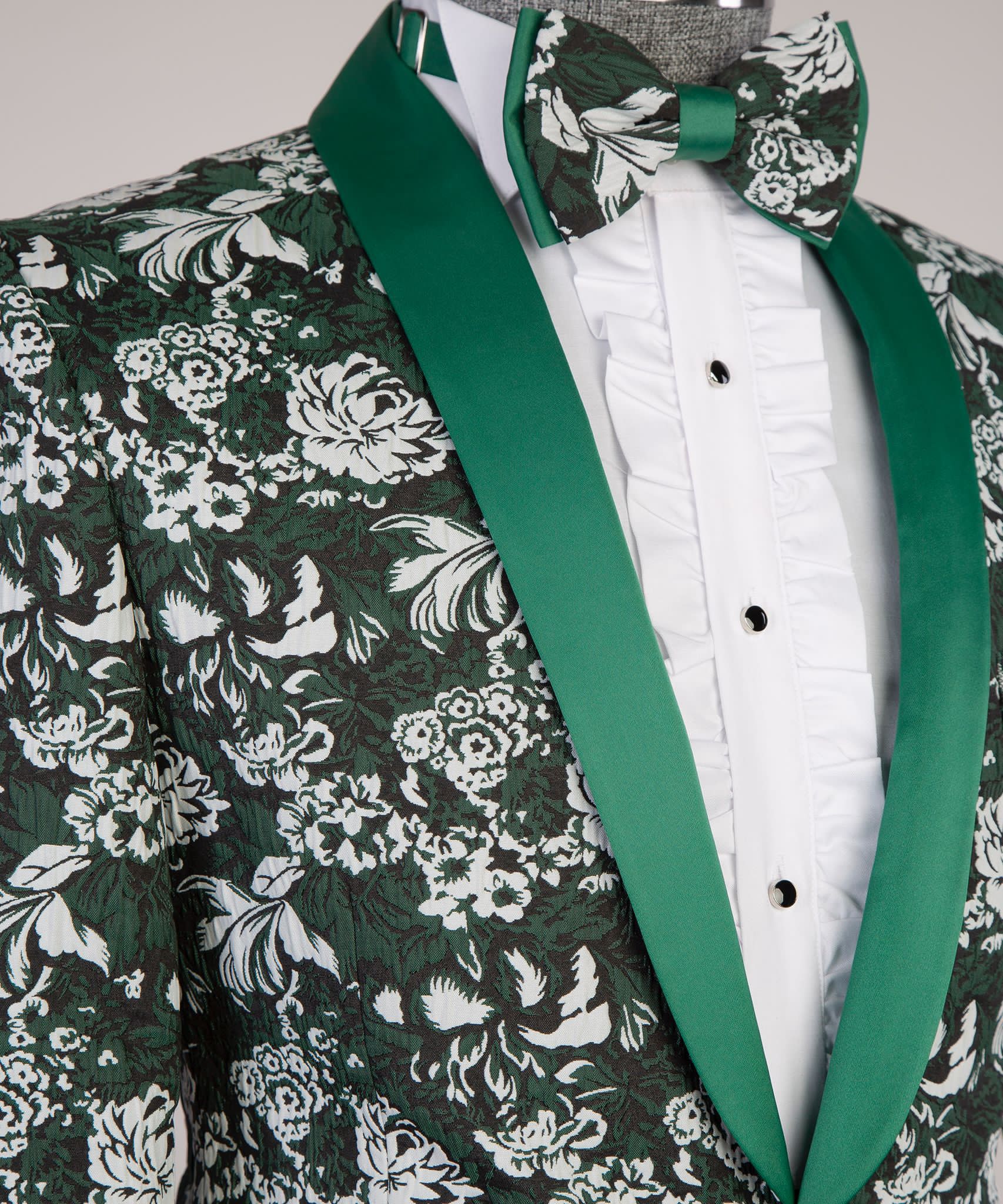 Featuring a vest, jacket, and trousers, this ensemble stands out with its wide-lapel vest and subtle sophistication.